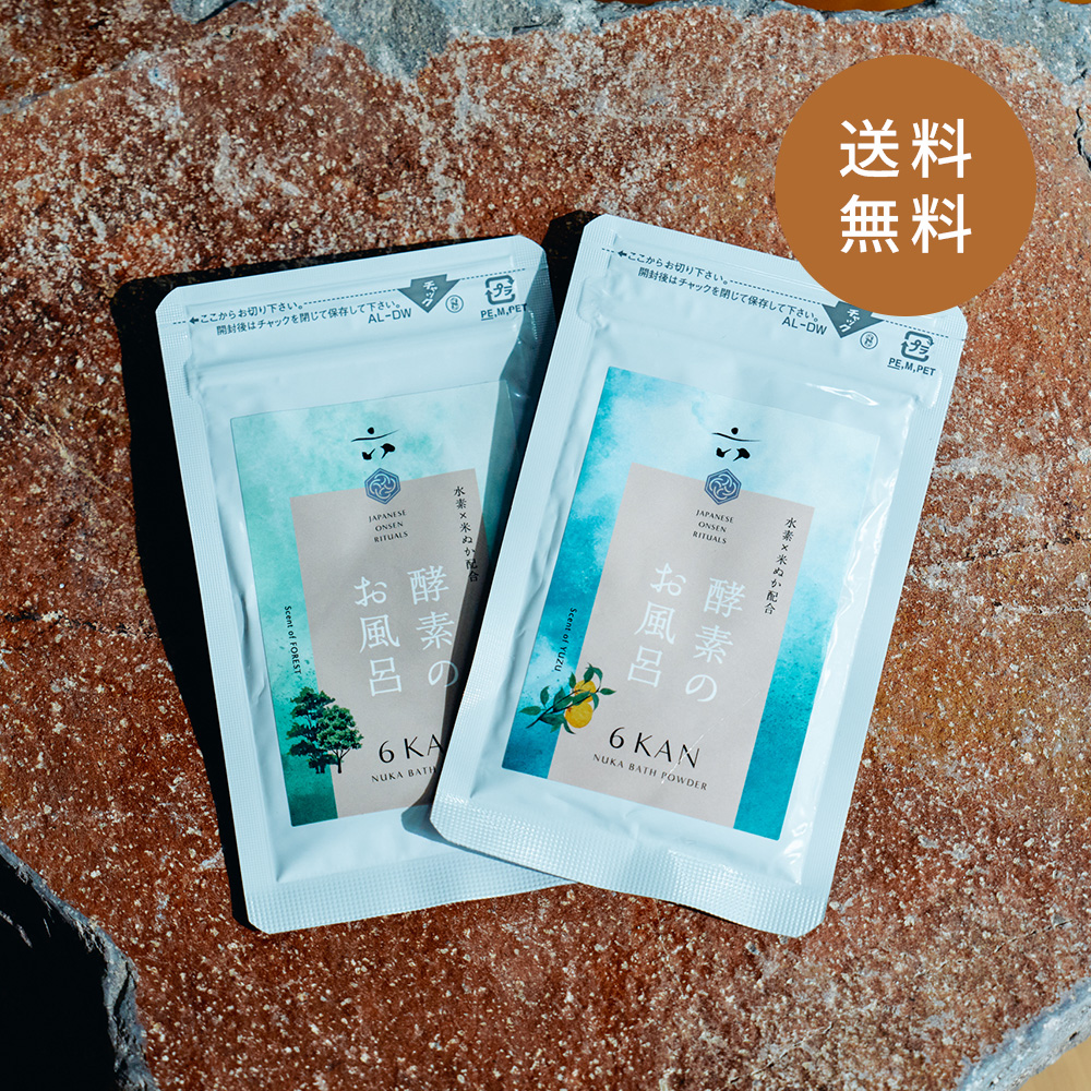 2回分(森林の香り・柚子の香り)がセットになった6KANの入浴剤。