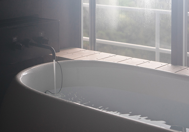水素の溶け込んだお風呂は、きめ細かな泡がリラックス気分を高めながらじんわりと身体を温め、お風呂を出たあとも長くポカポカが続きます。ぬるめお湯に、10〜15分ほど全身浴がおすすめです。